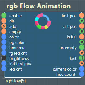 Die RGB Flow Animation fügt bewegte Lichtpunkte in eine LED-Kette ein, die wie Teilchen, Pakete oder Impulse durch den Prozess wandern.